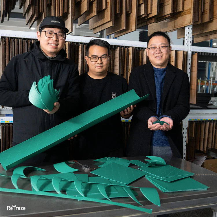 ReTraze® collaborates with small businesses, fishermen, and NGOs to collect these discarded nets and give them a new life. The recycling process begins with careful selection, followed by a series of steps: cutting, washing, melting, shredding, and extruding. These nets are then