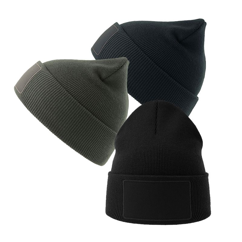 This classic beanie made from recycled polyester yarn is now enhanced with a large customizable maxi front patch, also made from recycled polyester, making it perfect for transfers.